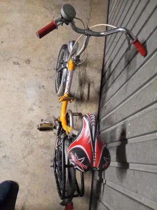 Bicicletta Graziella vintage degli anni '90. Un classico intramontabile per muoversi in città. - Telaio robusto di colore arancione. - Manubrio con impugnature in legno. - Sella nera. - Portapacchi posteriore.