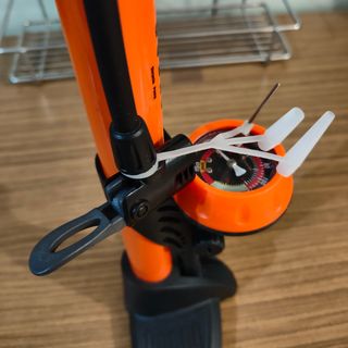 pompa schrader da pavimento per bicicletta, canotto, materassino gonfiabile, pallone, etc. con manometro e multi-attacco. fino a 170 PSI. multi attacchi inclusi (foto)