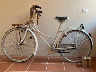Nuova, anni 80/90, residuo di magazzino, ancora con con carta di protezione originale. Rarità, con freni a bacchetta, portapacchi anteriore e posteriore, pedali ancora da montare. Data l'età ha bisogno di ripulitura, controllo e lubrificazione.