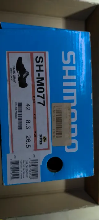 Scarpe da ciclismo Shimano modello SH-M077. - Colore: Dark Gray (Grigio Fonce). - Taglia EUR 42, US 8.3, CM 26.5. - Suola SPD.