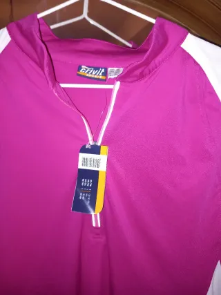 Maglia da ciclismo CRIVIT in fucsia e bianco, ideale per le tue uscite. Taglia 46/48. Cerniera frontale. Maniche corte.
