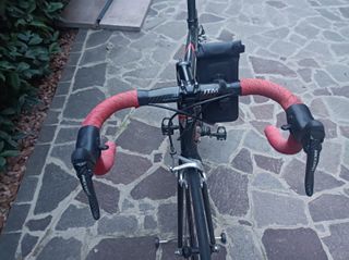 Bicicletta BH in carbonio con dettagli rossi. Taglia s/m. - Telaio in carbonio. - Manubrio e grip rossi. - Stato quasi nuovo, negoziabile, accetto scambi