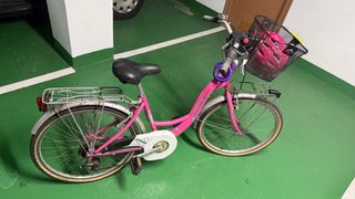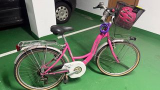 Bicicletta da passeggio in colore rosa, pronta all'uso. - Cestino anteriore. - Lucchetto incluso. - Casco protettivo abbinato. - È possibile aggiungere un altro cestino posteriore PREZZO TRATTABILE