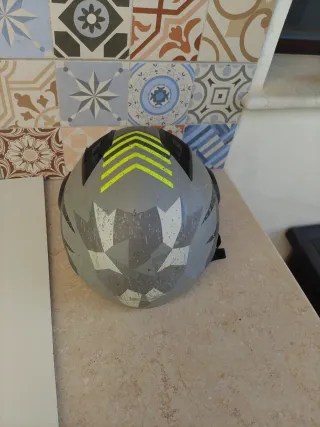 Casco da moto grigio con dettagli gialli. - Taglia S - Design moderno