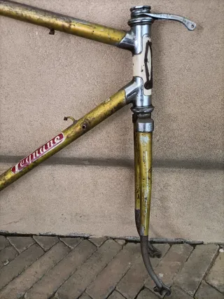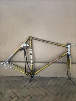 Telaio Legnano mod 50 vintage Vendo telaio Legnano modello 50 tipo condorino in acciaio. Il telaio include serie sterzo, movimento centrale e vite stringisella. Le misure sono: tubo orizzontale 55cm, tubo verticale 56cm. È possibile la spedizione SOLO CON BARTOLINI (NO poste o inpost), e anche il ritiro a mano su Milano (zona Maggiolina, Milano Nord). L'anno stimato del telaio è il 1959. Telaio per bicicletta Legnano modello 50. - Colore giallo. - Dettagli cromati.