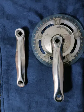 Vendo guarnitura tripla marca Prowheel per MTB o City Bike, completa di pedali flat inclusi. Specifiche: Pedivelle: 170 mm Attacco: Perno Quadro (Square Taper) Corone: 3 velocità Stato: Usata, da pulire. Segnalo un dente della corona esterna leggermente piegato (da raddrizzare con una pinza per una cambiata ottimale). Filettature pedali e attacco perno integri. Prezzo d'occasione per chi cerca ricambi economici e funzionali. Spedizione rapida con Wallapop. #Bici #MTB #Prowheel #Ricambi #Bicicletta #PernoQuadro