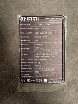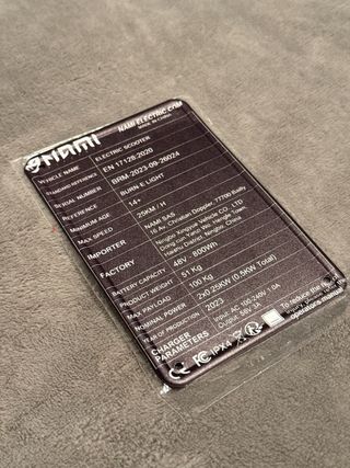 Vendo targhetta personalizzata per monopattino elettrico Nami Burn-E Viper 40Ah. È stata creata appositamente per risultare legale in caso di controllo. Realizzata in alluminio, può essere posizionata sotto al telaio. Adatta a tutti i modelli della serie Nami (Klima, Blust, Stellar). La vendo solo perché ne ho realizzate più di una.