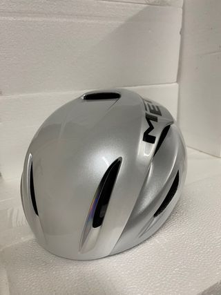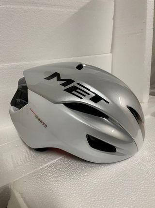 Casco MET Manta Mips, ideale per il ciclismo. - Design aerodinamico. - Sistema di sicurezza Mips integrato. - Colore argento e bianco.