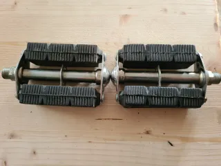 Coppia di pedali per bicicletta con superficie in gomma nera. - Materiale: Gomma e metallo. - Design a listelli per una maggiore aderenza.