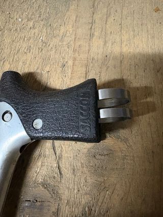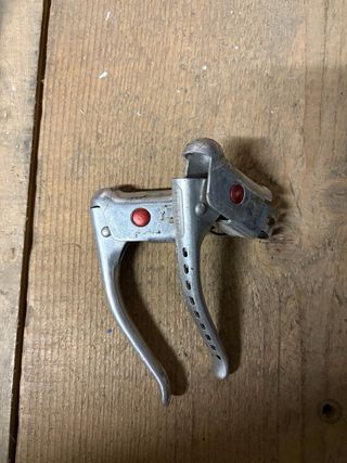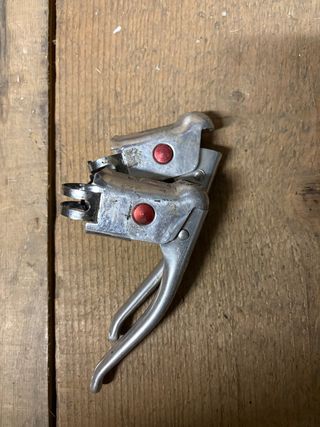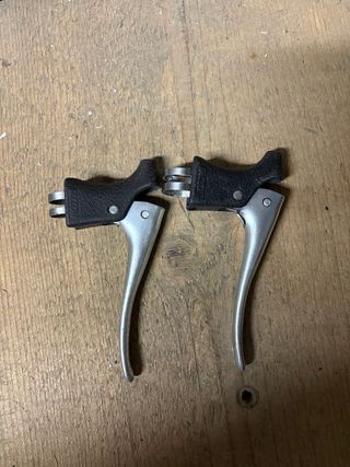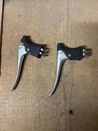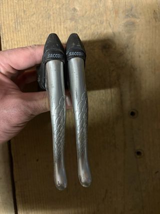 Coppia di leve freno per bicicletta marca Saccon. - Leve in metallo. - Copri leve in gomma nera.