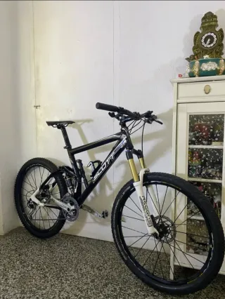 Pesa molto poco e funziona perfettamente, sia i cambi, i freni che la doppia sospensione. I segni di usura sono dovuti agli anni trascorsi nel ripostiglio. - Ruote da 26 pollici. - Telaio in alluminio. - Cambio Shimano.