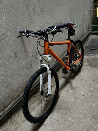 Bicicletta da montagna Monty in un arancione vibrante, ideale per godersi percorsi e sentieri. - Ruote da 26 pollici. - Freni a disco. - Sospensione anteriore. - Telaio in alluminio. È la taglia più piccola per adulti, nel mio profilo ne ho un'altra...