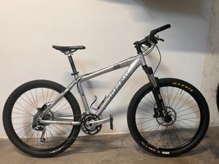 bicicletta in condizioni molto buone, come da foto viene venduta con tutti i pezzi originali, come sella, freno anteriore(Shimano elixir idraulico) due dischi da 180 e manubrio. ora monta forcelle ad aria rockshock, freno posteriore Shimano elixir idraulico, manopole odi e sella mafiabikes,unica cosa da cambiare sono i copertoni, si possono ancora usare, soprattutto quello posteriore ma quello anteriore ormai è praticamente finito. per altre foto oppure per parlare del prezzo scrivetemi in privato