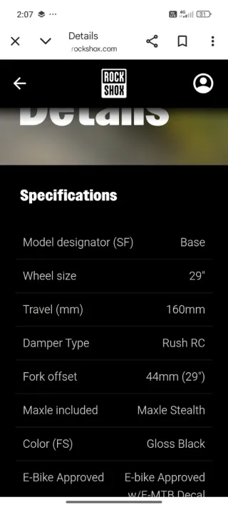 Forcella RockShox Lyrik nuova, specifica per e-bike. - Diametro ruota: 29 pollici - Boost - Escursione: 160mm Forcella nuova e-bike 29 boost 160mm rockshox lyric base Model designator (SF) Base Wheel size 29" Travel (mm) 160mm Damper Type Rush RC Fork offset 44mm (29") Maxle included Maxle Stealth Color (FS) Gloss Black E-Bike Approved E-bike Approved w/E-MTB Decal Steerer 1.5" Tapered Axle 15x110mm BOOST™ TC Compt Axle to Crown (mm) 571 Brake type (FD) Disc Crown Material Forged, hollow aluminum Upper crown type n/a Lower leg type Magnesium Upper Tube Finish Fast Black Upper tube type 35mm tapered wall aluminum Damper adjust Crow