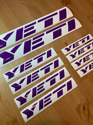 Set di 10 adesivi YETI di colore viola. Misure nell’ultima foto Adesivi in vinile fustellato senza sfondo Colori disponibili: Rosso, Verde, Giallo, Rosa, Oro, Argento, Bianco, Blue, Nero, Arancione, Grigio Tutti i nostri sticker vengono consegnati con pellicola di trsferimento ( Application Tape ) in scatola rigida Prodotto Made in Italy Garantito 7 Anni mtb, descenso, btt, dh, downhill, trail, sella, manubrio, stelo, cambio, cerchioni, ebike, Epic, Stumpjumper, Rockhopper, Trance, Anthem, Talon, Fathom, Oiz, Alma, Rallon, Onna, Lux, Neuron, Spectral, Scott, Specialized, XL, M, L, 27, 29, Orbea.