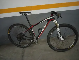 Bicicletta da montagna GHOST con ruote da 29 pollici. Telaio in carbonio, taglia M, freni a disco, sospensione anteriore.