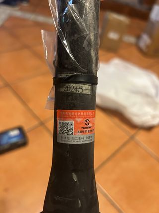 Forcella in carbonio per bicicletta da montagna. Prodotta da TOSEEK. Include etichetta di autenticità per verifica.