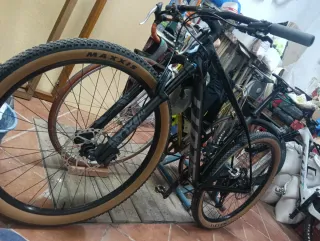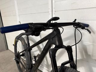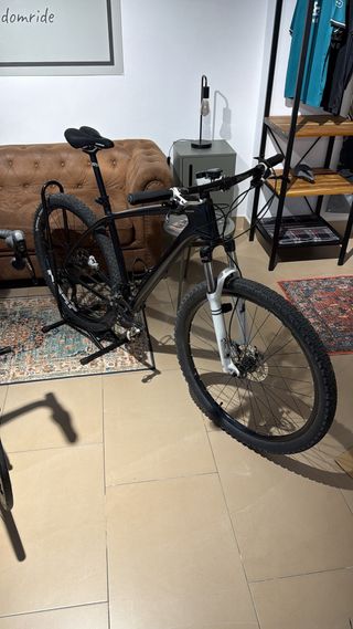 Bicicletta da montagna con telaio in carbonio. Telaio in carbonio leggero e resistente. Sospensione anteriore FOX. Freni a disco idraulici. Ruote da 29 pollici. Vendo o scambio con bicicletta a doppia sospensione ruota 29.