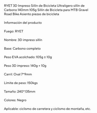 Sedile in carbonio per bicicletta da montagna (MTB). Design leggero e aerodinamico. Materiale: Carbonio. Acquistato per errore. Una prova e poi restituito.