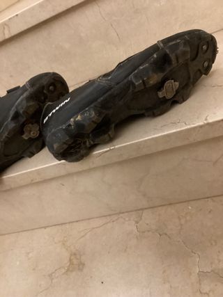 Scarpe da ciclismo Rockrider Race 700 (Decathlon) per MTB. Usate, in buone condizioni generali, con segni normali di utilizzo. Sistema di doppia chiusura con velcro, rigide e stabili per una buona trasmissione di potenza al pedale. Taglia EU 46 (29,5 cm), modello Race 700, utilizzo MTB, colore nero, compatibili con cale SPD, pulite e pronte per l'uso. Ideali come scarpe di ricambio o per allenamenti. Vendute come si vedono nelle foto.