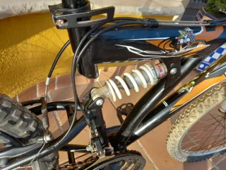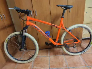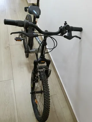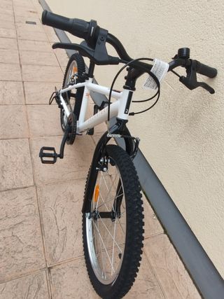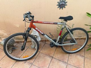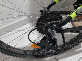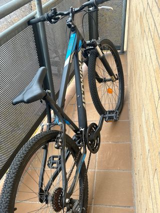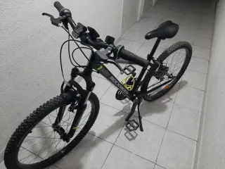 Bicicletta da montagna da 26 pollici, taglia L, tre pignoni e 7 corone, acquistata da Decathlon. Ideale per iniziare con il ciclismo di montagna. Non necessita di manutenzione. Presenta solo qualche piccolo graffio sul sellino. Ritiro possibile a Galapagar, Madrid. - Telaio in alluminio. - Sospensione anteriore. - Ruote nuove.