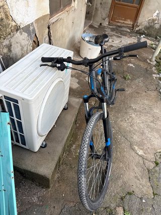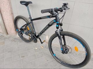 Bicicletta da montagna con ruote da 27.5 pollici e taglia M. Ideale per iniziare con la MTB. - Telaio in alluminio leggero. - Sospensione anteriore. - Freni a disco idraulici Shimano appena sostituiti, dischi e pinze - Cambio appena sostituito in Decathlon - Cassetta a 8 velocità Sunrace sostituita 6 mesi fa 11-42 - Catena sostituita quest'anno
