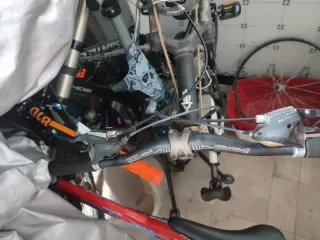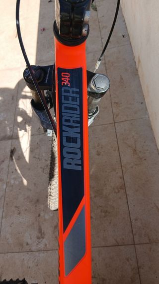 Bicicleta da montagna Rockrider di Decathlon in colore rosso. - Taglia L - Telaio in alluminio. - Sospensione anteriore. - Freni a disco. L'ho comprata meno di un anno fa e l'ho usata 2 volte, ha ancora i peli sulle ruote. L'unico lavoro da fare è gonfiare le ruote, che si sono sgonfiate mentre era ferma.