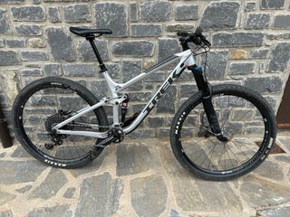 Bicicletta da montagna Trek Superfly taglia M. Ideale per percorsi e sentieri. - Telaio in alluminio leggero. - Ruote da 29 pollici. - Freni a disco idraulici SRAM Level T. - Trasmissione SRAM GX 2 X 10V. - SOSPENSIONE ROCK SHOX REBA CON BLOCCAGGIO CONSEGNATA COMPLETAMENTE RIVISATA.