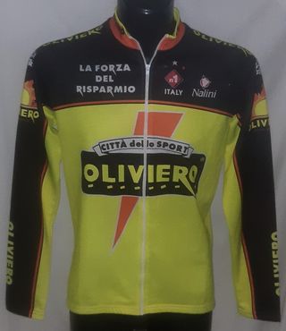 Nalini Team Oliviero la Città dello Sport Maglia adatta a 1/2 Stagione (interno garzato) Sponsors - Oliviero Taglia: 5 - XL 1/2 Zip - Mezza Cerniera Manica Lunga Colore: Vedi Foto REALI 3 Tasche Posteriori Ottime Condizioni FOTO REALI