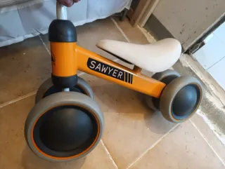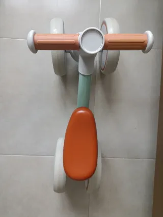 Bicicletta di equilibrio a due ruote, ideale per i più piccoli che imparano a montare. Design moderno in toni pastello e arancione. Sedile comodo e manubrio ergonomico. Ruote resistenti per diverse superfici. Utilizzo molto limitato, molti chilometri da percorrere.
