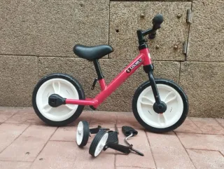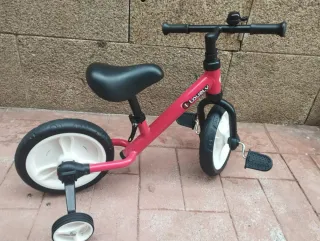 Bicicletta di apprendimento per bambini di 2 anni. Ideale per iniziare nel mondo delle due ruote. - Colore rosso - Design leggero e maneggevole. - Ruotine e pedali di supporto inclusi e rimovibili.