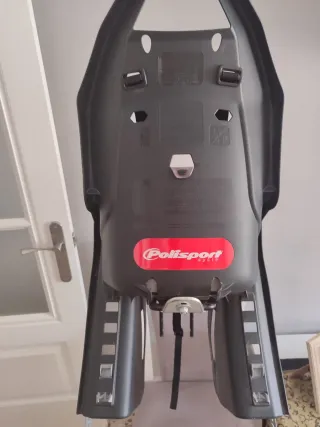 Seggiolino di sicurezza per bambini marca Polisport, progettato per biciclette. Colore nero. Logo del marchio visibile.