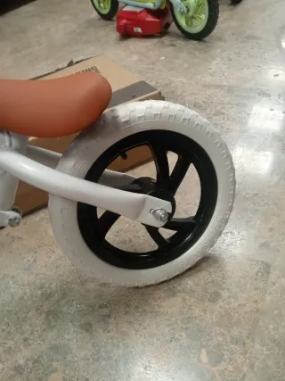 Bici di equilibrio per bambini piccoli, ideale per imparare a bilanciarsi. - Telaio bianco. - Ruote nere. - Sedile nero regolabile.