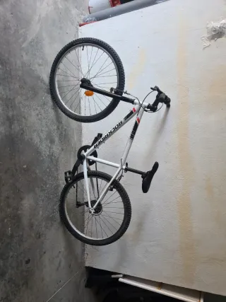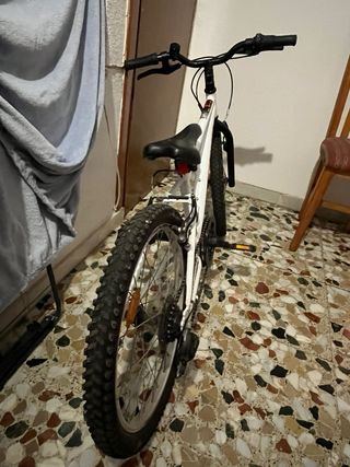 Bicicletta da montagna Decathlon in colore bianco. - Telaio in alluminio. - Sospensione anteriore. - Freni a disco. - Ruote da 26 pollici.