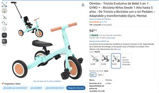 Bicicletta evolutiva per bambini, ideale per imparare a pedalare. 90 euro su Amazon. Vendo a meno della metà del prezzo. Olmitos - Triciclo Evolutivo da Bambino 5 in 1 GYRO + - Bicicletta per Bambini da 1 a 5 Anni - Da Triciclo a Bicicletta con o senza Pedali - Adattabile e trasformabile (Gyro, Menta) - Si trasforma da triciclo a bicicletta da equilibrio. - Ruote in gomma per un giro morbido. - Manubrio con impugnature antiscivolo. - Sedile regolabile in altezza.