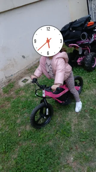 Bicicletta elettrica per bambini con un accattivante design in rosa. Fornisco video e foto reali per gli interessati - Ruote tuttoterreno. Sella regolabile.