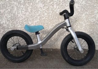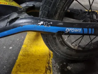 Bicicletta da equilibrio Orbea Grow 0, ideale per i più piccoli. - Telaio di colore nero con dettagli in blu. - Ruote da 12 pollici. - Sella regolabile in altezza. La bici presenta graffi dovuti all'uso, ma è perfetta ed è molto bella.