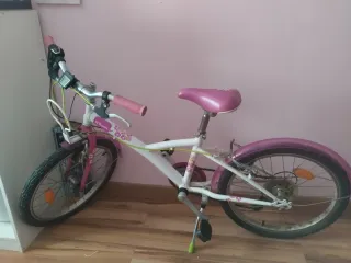 Bicicletta per bambini da 20 pollici in ottime condizioni, usata pochissimo. Include casco. - Colore rosa e bianco. - Cestino anteriore. - Sella con design a cuore.