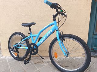 Bella bicicletta Racer 20" come nuova! Bellissimo colore azzurro, adatta per bambini 6-9 anni. Ruote in alluminio 20" con pneumatici tassellati per una buona presa su terra e asfalto. Cambio Shimano a 6 marce per imparare a salire in salita senza sforzo. Freni V-Brake: potenti e sicuri. Accessori inclusi: Deflector, campanello, riflettenti su entrambe le ruote per una maggiore visibilità. Usatissima, telaio quasi immacolato, bici revisionata e pronta per far divertire il tuo piccolo.