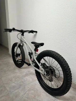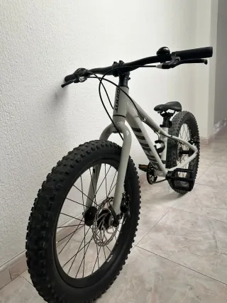 Bicicletta per bambini in stile Fat Bike con ruote da 20 pollici. - Telaio di colore grigio chiaro. - Pneumatici larghi per ogni tipo di terreno. - Freni a disco. - Sella nera regolabile.