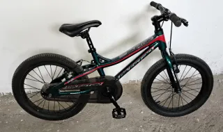 Bicicleta infantile della marca Cup's, ideale per i più piccoli. Include ruotine di supporto, freni sul manubrio e sella regolabile. Sospensione anteriore e posteriore. Alcuni bulloni presentano un po' di ruggine per via del tempo passato in magazzino, ma tutto funziona perfettamente.