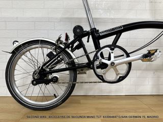 🎯 SECONDBIKE – OLTRE 10 ANNI NELLA VENDITA DI BICICLETTE USATE 🎯 COMPLETAMENTE CONTROLLATA E PRONTA PER L'USO 🎯 GARANZIA: 1 ANNO 🎯 WHATSAPP: 633 06 48 47 🎯 SPEDIZIONE DA: 49€ QUADRO: ALLUMINIO TAGLIA: UNICA TRASMISSIONE: BROMPTON 3V CAMBIO: BROMPTON PEDALIERA: BROMPTON FRENI: BROMPTON RUOTE: BROMPTON COPERTONI: SCHWALBE 16X1.35 🎯 INDIRIZZO E CONTATTI C/ San Germán 70, 28020 Madrid Metro: Estrecho – Tetuán (L1) Tel: 910 22 10 42 – 633 06 48 47 Orario: L-V 10:00–14:00 / 17:00–20:00 Sabato 10:00–14:00