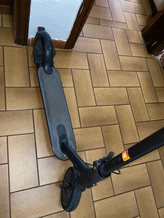 Monopattino elettrico nero. - Manubrio con impugnature grigie. - Ruota anteriore nera. - Piattaforma nera con texture antiscivolo. -Senza un caricabatterie -Non funziona a causa di un'interruzione interna dei fili di ricarica