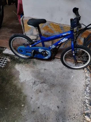Bicicletta per bambini di colore blu. - Ruote da 16 pollici. - Telaio robusto. - Sella regolabile.