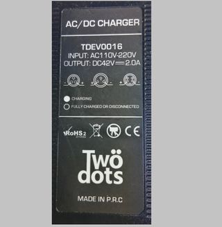 Caricabatterie per monopattini TwoDots (e molti altri) Adatto per batterie Litio 36V Mod. TDEV 0016 Ingresso 220Vac Uscita 42Vdc 2,0 A Jack out diametro 5 mm Led stato di carica Certificazione CE e RoHS