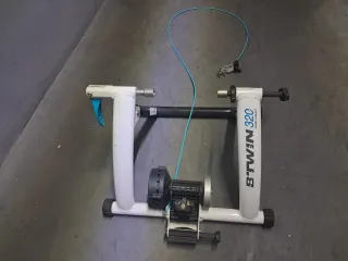 Rullino da allenamento per biciclette della marca Btwin. Permette di allenarsi a casa con la propria bici. Struttura robusta, sistema di fissaggio, cavo di connessione.