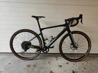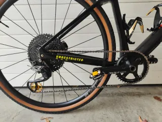 Bicicleta BMC URS Two taglia M, gravel. - Telaio in carbonio. - Ammortizzazione posteriore in elastomero. - Trasmissione Shimano GRX 812 1x11. - Corona 40, sella, catena e pedali nuovi. - Cassetta 11/50. - Manettino e rulli Garbaruk. Questo modello monta di serie Sram Apex sostituito da Shimano GRX 812, un gruppo superiore, con miglior funzionamento, peso e frenata. Si mantengono solo le bielle precedenti. Si fornisce manettino Shimano originale non utilizzato. Molto ben curata.