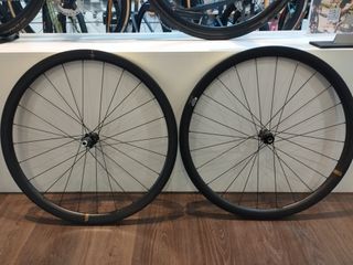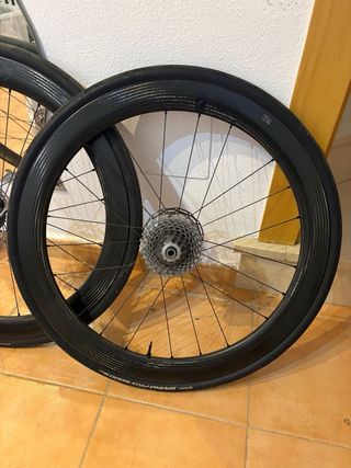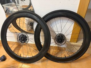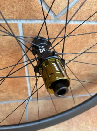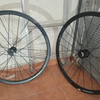 Set di ruote in carbonio con profilo 38 e 40, montate su misura con cuscinetti dtswis 240, raggi sapim, nucleo xdr e hg, molto leggere, praticamente nuove. Il prezzo non è negoziabile.