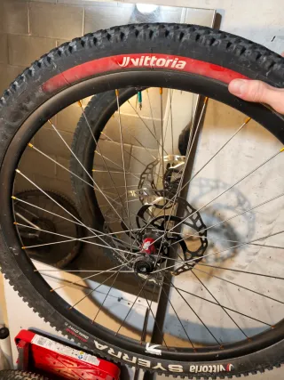 Set di ruote in carbonio Vittoria Syerra e Mezcal per bicicletta. Cuscinetti appena sostituiti. - Cerchio in carbonio top gamma T-1000 interno 25. - Pneumatico Vittoria Syerra al 95% e Vittoria Mezcal 2.4 al 90%. - Mozzo 240s, raggi in titanio anteriori e CX Ray posteriori. - Mousse XC liner di Vittoria da 52 gr anteriore e posteriore. - Cassetta Xcnc ultraleggera 9-52 pochi km. - Dischi Galfer a scelta 160-180-203 o 223. Prezzo in base alle opzioni.