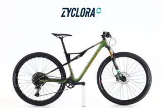 Bici usata ricondizionata · 1 anno di garanzia · Immagini reali · Finanziamento da 257 € in 12 mesi · Bicicletta Mountain Bike doppia sospensione · Telaio in Carbonio · Taglia M: da 165 cm a 179 cm · Dimensioni della ruota: 29" · Deragliatore posteriore: · 12 Velocità velocità · Cassetta: 10-50-T · Leve del cambio: Sram GX · Pedivelle: Shimano SLX · Corone: 32-T · Freni: Shimano XT · Ruote: · Forcella: Fox 32 SC Factory Kashima · 100mm di escursione · Ammortizzatore: Fox Float I-Line Performance · Materiale della potenza: Alluminio · Manubrio: · Reggisella: Alluminio.